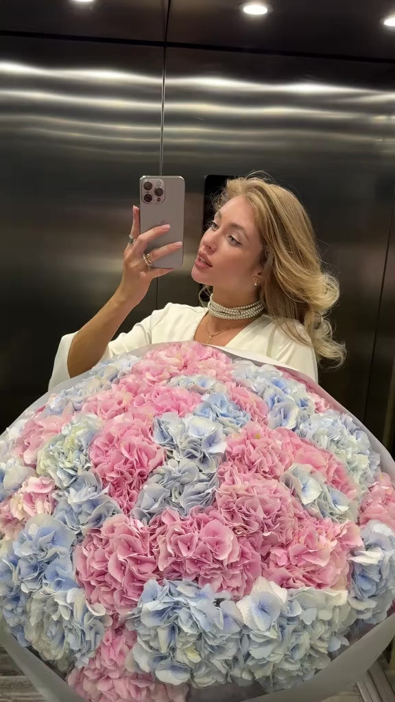 A bouquet of 15 hydrangeas (the shade may vary from white to soft pink)